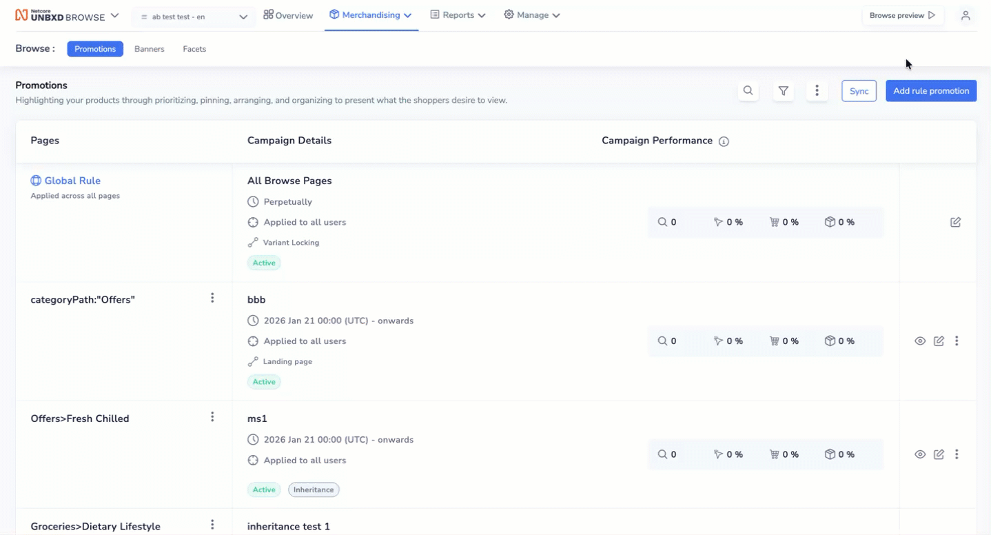 Query-specific merchandising rules allow you to customize promotions for specific queries or segments, offering a more targeted approach to shopper engagement. Navigate to Merchandising > Browse > Promotions > Add promotions. The following parameters must be filled in.