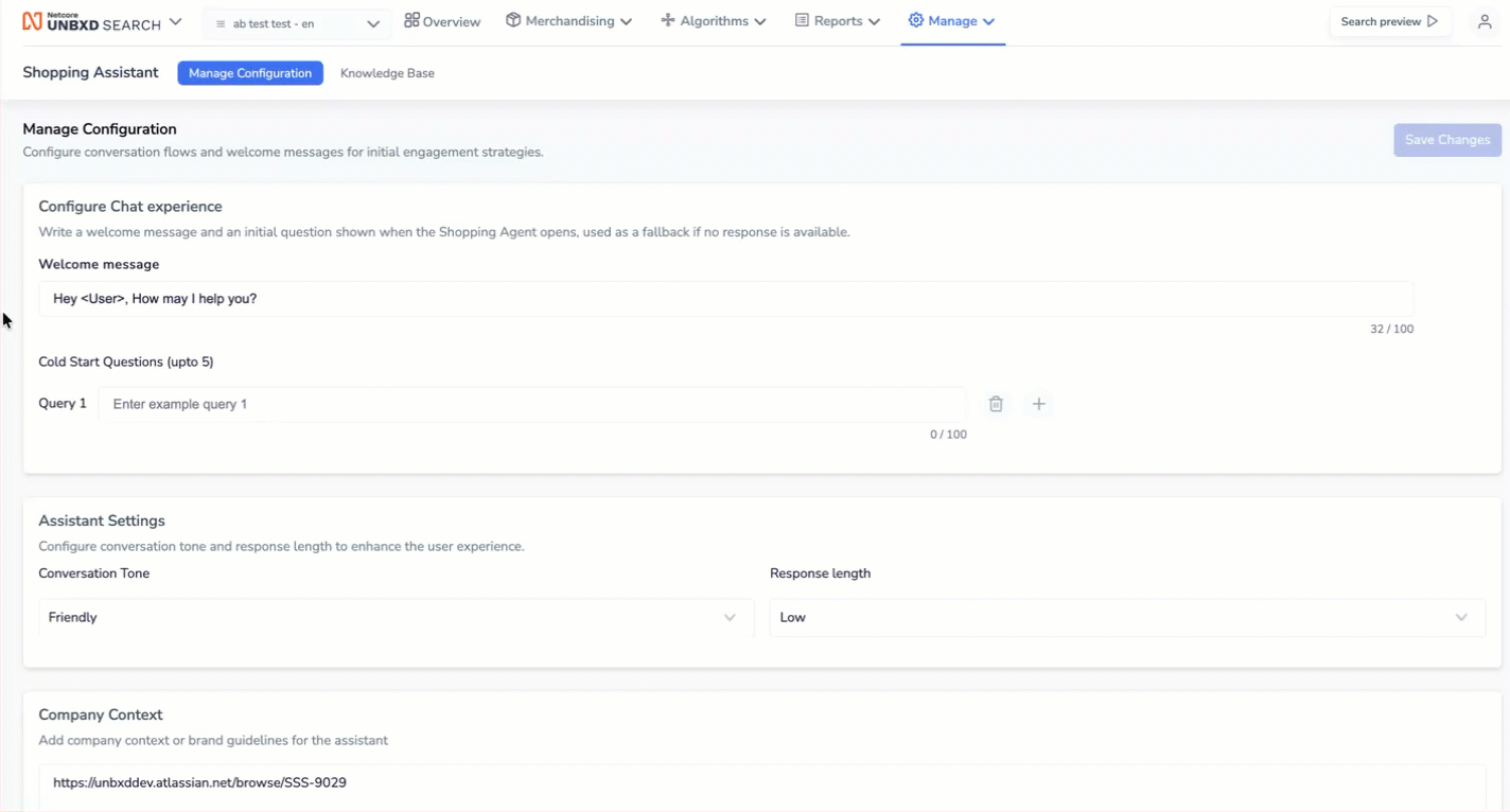 Once you've completed all fields, click the Save Changes button (top-right corner). Your Shopping Assistant is now configured and ready to use